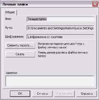 Если в использовании некоторого файла личных папок уже нет необходимости, его можно удалить из конфигурации, нажав кнопку Удалить (Delete). Нажатие кнопки Добавить (Add) вызовет появление уже рассмотренного диалогового окна, в котором можно создать новый файл данных.